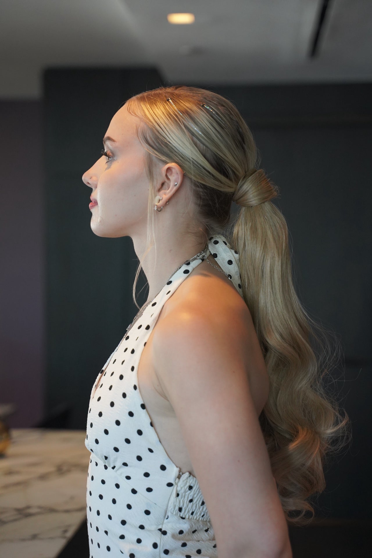 Transform your look in an instant with our Bouncy Louise sleeve pocket ponytail!